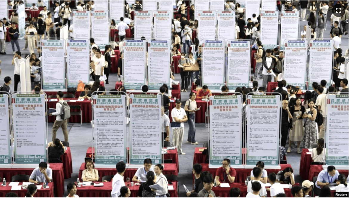中国国家统计局上个月中旬公布的剔除在校学生的青年(16-24岁)失业率为14.95%。尽管经过中国所说的统计方式的“优化”后,这个新的数字大幅低于去年6月创纪录的21.3%的失业率,但是这个失业率仍然很高,而且也并不代表实际情况的任何改善。