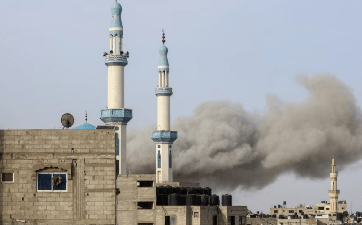 在加沙地带南部的拉法,浓烟在以色列空袭后冒起。(2024年3月27日)