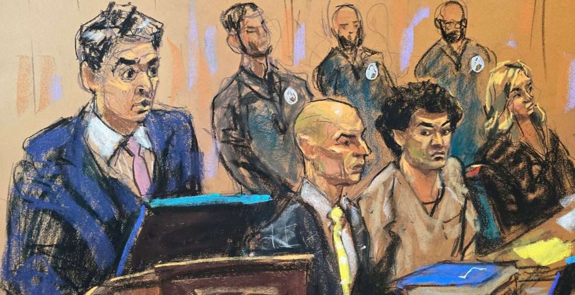 这幅法庭素描画的是周四,一头黑发的山姆·班克曼-弗里德出席在纽约举行的判决听证会。