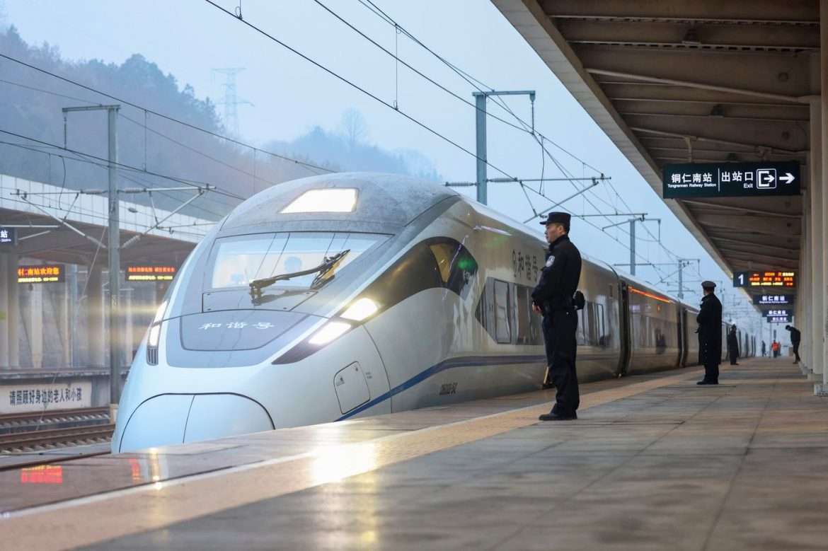 中国天津,一列准备出发的高速列车。图片来源:LI RAN/ZUMA PRESS