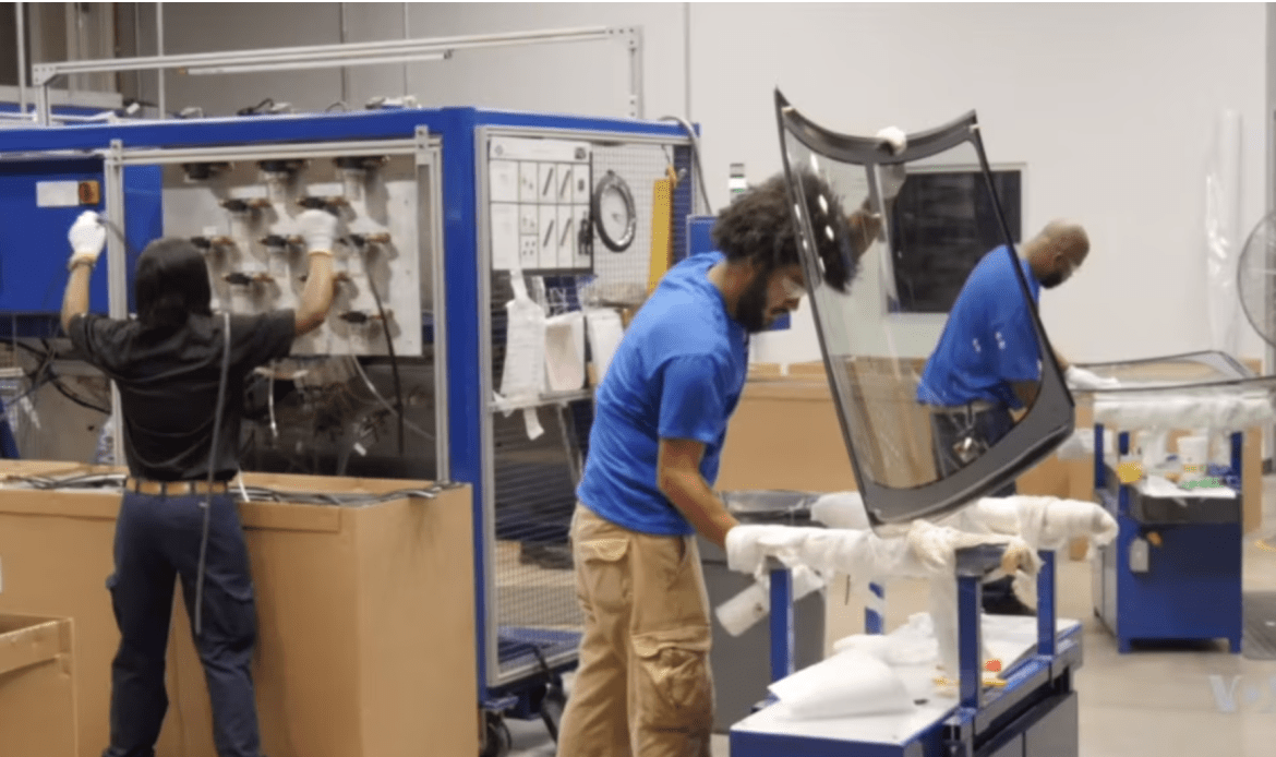 资料照片:福耀玻璃集团在美国俄亥俄州的分厂工人在工作。