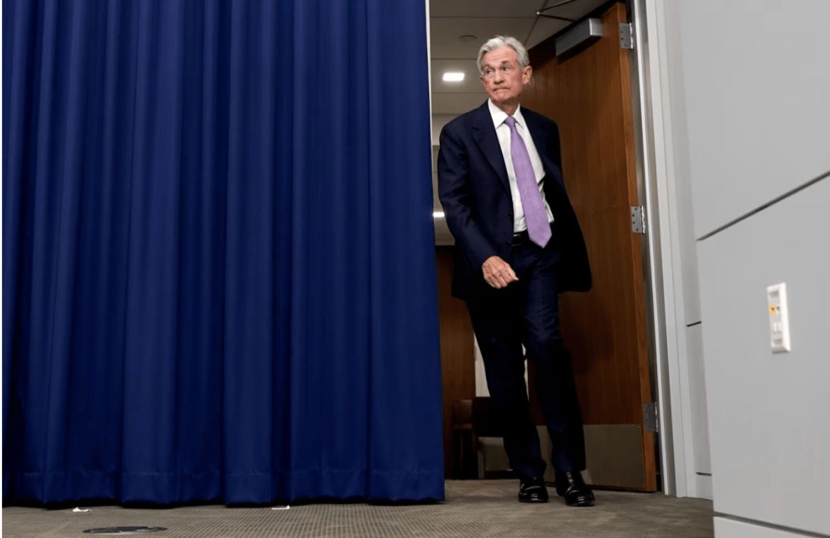 周三,美联储主席鲍威尔在华盛顿举行新闻发布会前。图片来源:Al Drago/Bloomberg News
