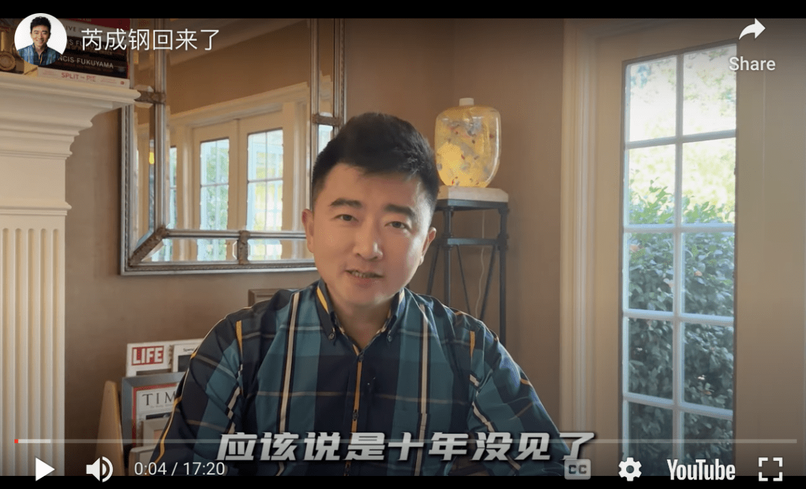 2024年10月21日,芮成钢以“芮成钢回来了”为题在YouTube发布自我介绍的视频,重新回归公众视野[28]。