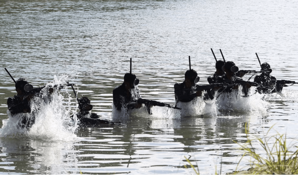 资料照片:这张照片拍摄于2024年10月2日,朝鲜人民军特种部队基地的部队正在参加训练,该基地位于朝鲜境内一个未公开的地点。朝鲜中央通讯社于2024年10月4日通过KNS发布这张照片。