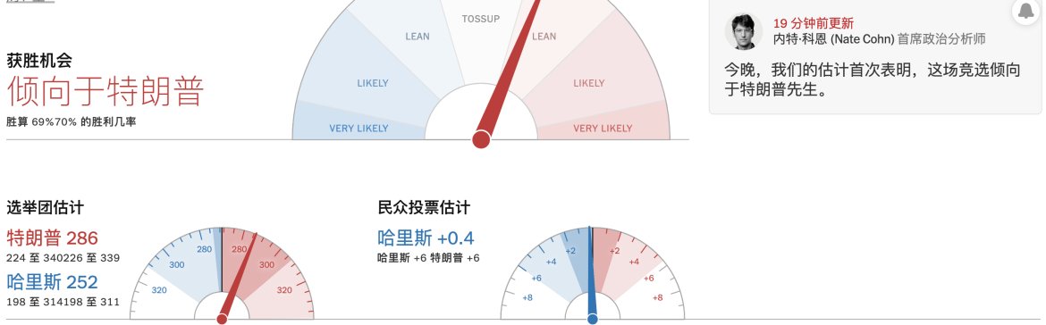 【本站编译】纽约时报总统选举实时预测 – 9:57PM EST 被 admin 2024年11月5日 2024年11月5日 9 共享 0 FacebookTwitterLinkedinWechatEmail 上一个新闻 【本站编译】《华尔街日报》大选实时选举结果速递 – 美东时间 晚上9:40 下一个新闻 【本站编译】CNN 美国大选最新报道 – 美东时间 晚10:22 相关新闻 中国网友疯传“吴亦凡死在狱中... 2025年11月9日 安世僵局 中国回应欧盟:全球... 2025年11月9日 纽时:深圳公司研发药物 让人... 2025年11月9日 中美贸易战降温:中国暂停多项... 2025年11月9日 “川习会”确定了!白宫公布正... 2025年10月24日 NASA回应马斯克:目标只有... 2025年10月24日 发表评论 撤销回复 在此浏览器中保存我的姓名、电子邮件和网站,以便下次发表评论时使用。