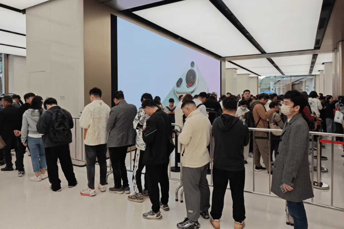 上海,人们在一家华为专卖店排队订购 Mate 70手机。图片来源:Cfoto/Zuma Press