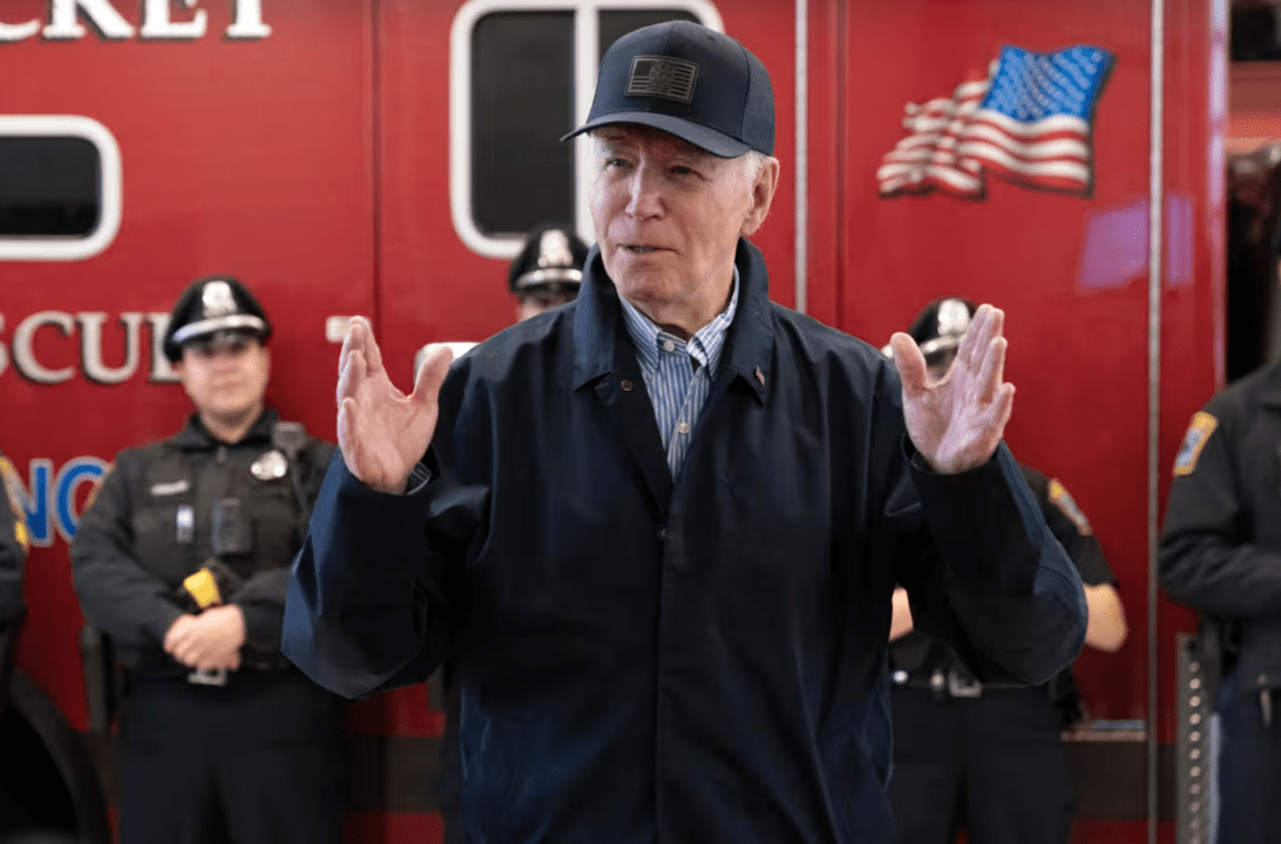 总统拜登在感恩节当天慰问了马萨诸塞州楠塔基特岛的消防员和警察。图片来源:Jose Luis Magana/Associated Press