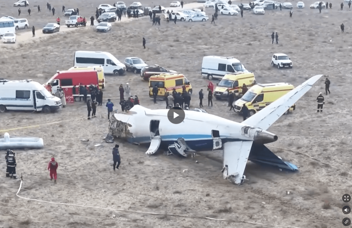 这架客机在哈萨克斯坦阿克套市附近坠毁,机上载有 62 名乘客和 5 名机组人员。