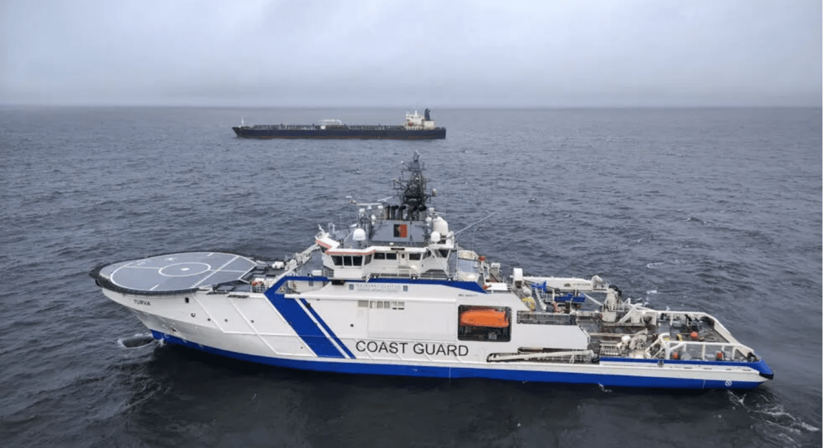 12月26日,芬兰边防警卫队船只和油轮“Eagle S”号在芬兰波卡拉半岛外海域航行。 © 路透社图片