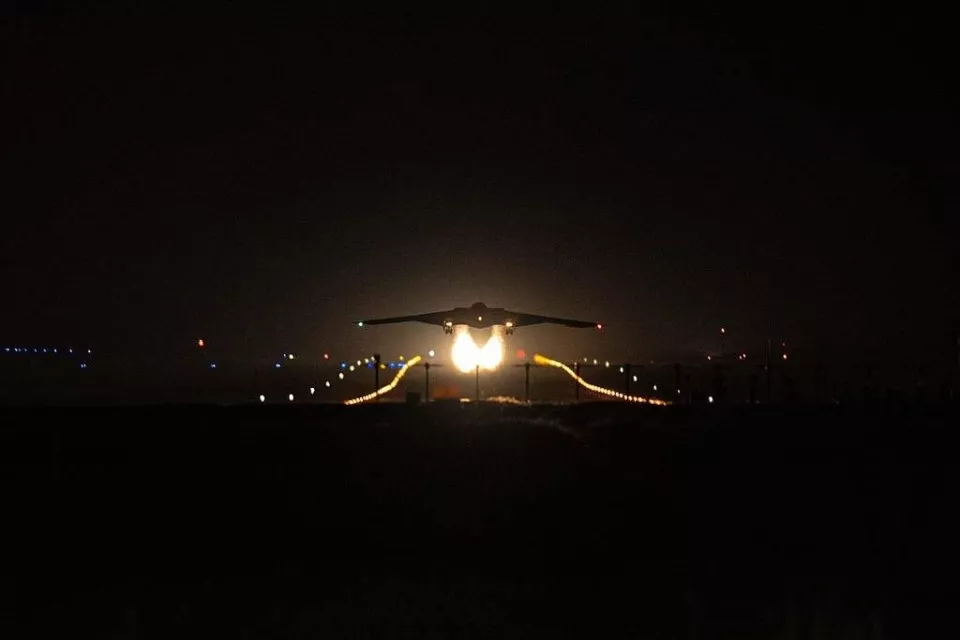 当地时间2025年6月20日,美国空军B-2“幽灵”隐形轰炸机起飞执行针对伊朗的“午夜之锤”打击行动。图源:视觉中国