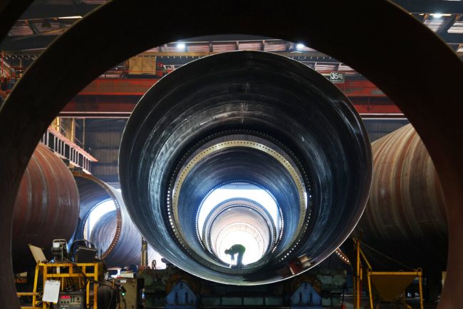 江苏一家建造风电塔筒的工厂。 -/Agence France-Presse — Getty Images