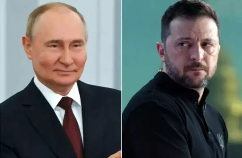 ▲乌克兰总统泽伦斯基(右),近日在德国受访时,声称俄罗斯总统普京(左)的时间所剩不多,引发外界揣测是否“话中有话”。合成图。(图/美联社/达志影像)