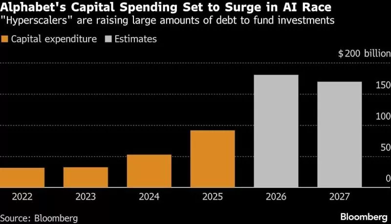 Alphabet预计2026年资本支出在1750亿至1850亿美元之间,来源:彭博社