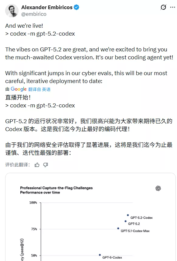 也有分析指出,Codex最近的能力提升与GPT-5.2的推理能力优化直接相关。o系列模型采用的训练方法,即让模型在结果可验证的编程任务中不断试错、获得反馈,这对代码生成的质量有明显帮助。编程本身就是一个反馈信号明确的领域,代码要么能运行要么不能,这种特性对模型迭代很有利。
