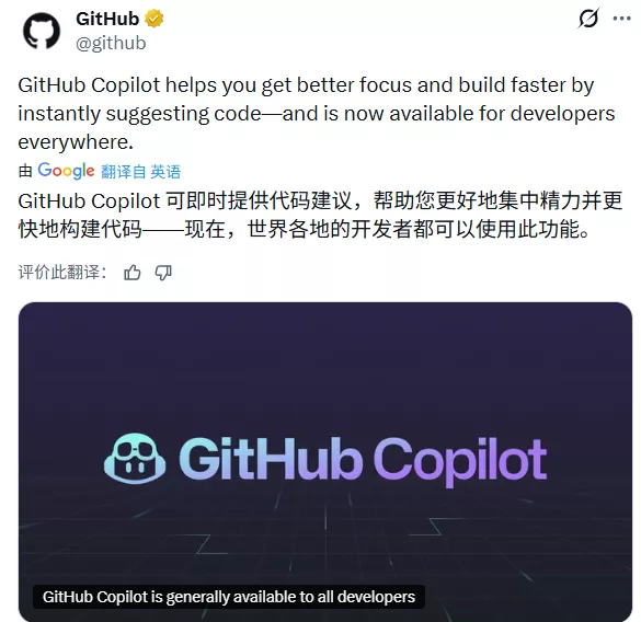 2022年6月,GitHub Copilot正式发布,几个月内就吸引了数十万用户。