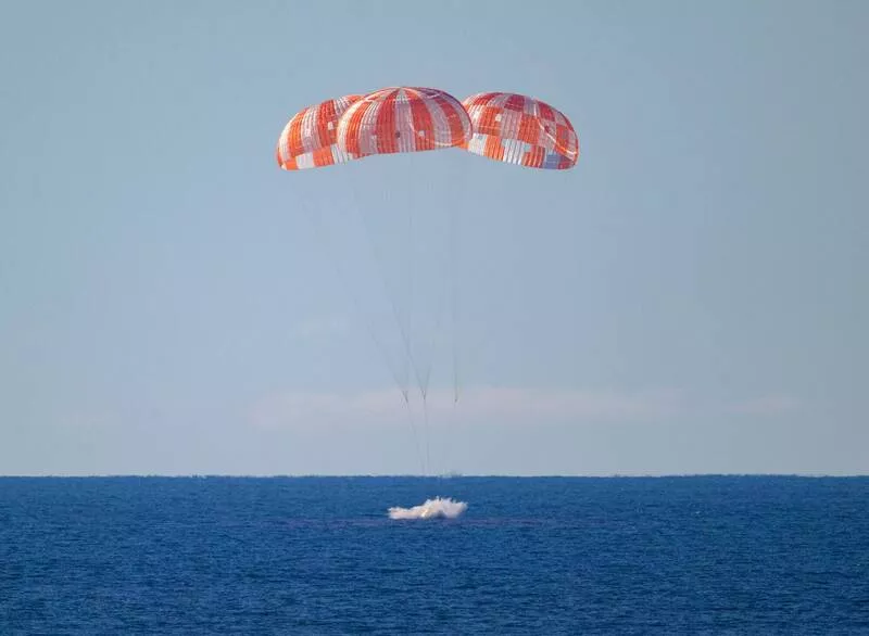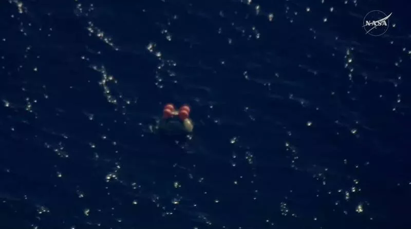 「獵戶座」太空船順利濺落太平洋。(圖擷取自NASA直播影片)