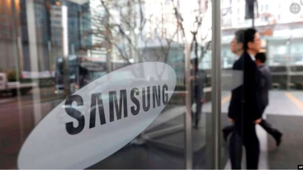 资料图片:2018年1月31日,一名员工走过首尔三星电子公司办公室的标志。(美联社)
