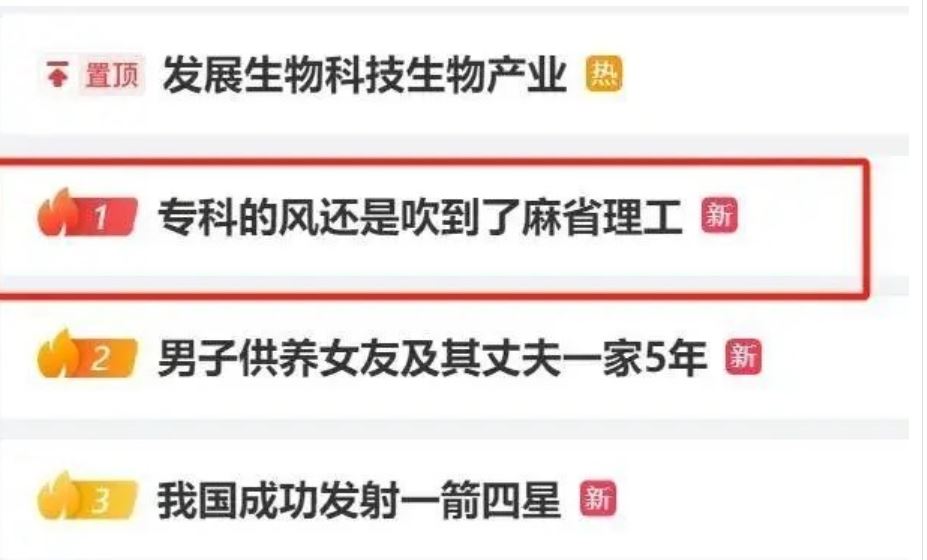 12月25日,话题“专科的风还是吹到了麻省理工”登上微博第一。