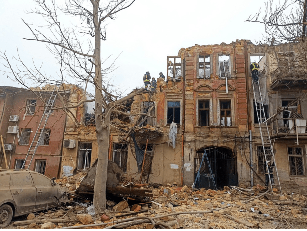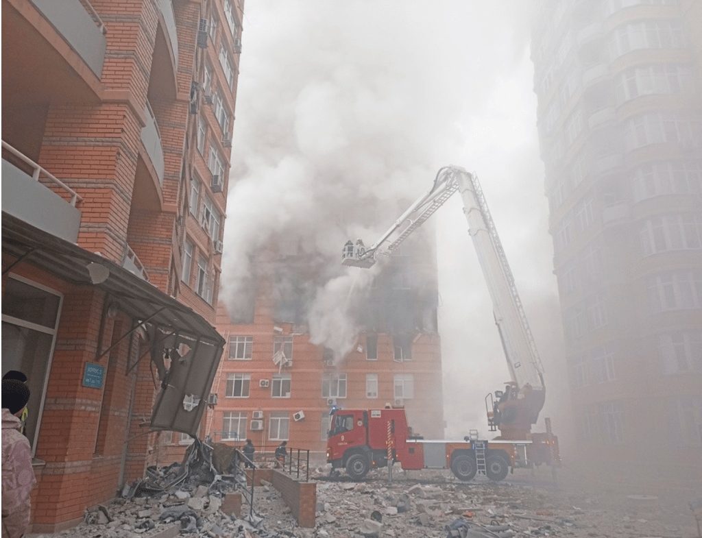 在乌克兰夏季的反攻未能取得重大突破后,前线的战斗在很大程度上因冬季天气而陷入困境。西方官员和分析人士警告称,俄罗斯最近几个月限制了巡航导弹的袭击,显然是为了积累库存,以便在冬季进行大规模打击,希望以此打击乌克兰的士气。图为乌克兰敖德萨,消防员正在扑灭空袭后一栋受损公寓楼的大火。