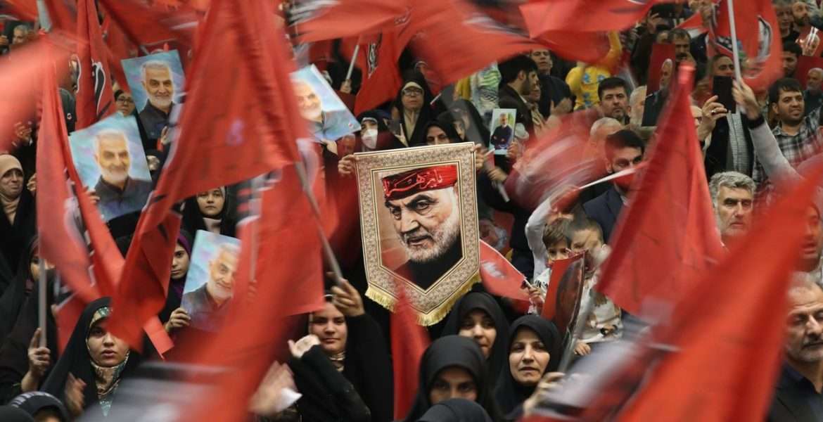 周三,伊朗人在德黑兰挥舞着已故的伊斯兰革命卫队精锐部队圣城旅指挥官苏莱曼尼的照片。图片来源:ABEDIN TAHERKENAREH/EPA-EFE/SHUTTERSTOCK