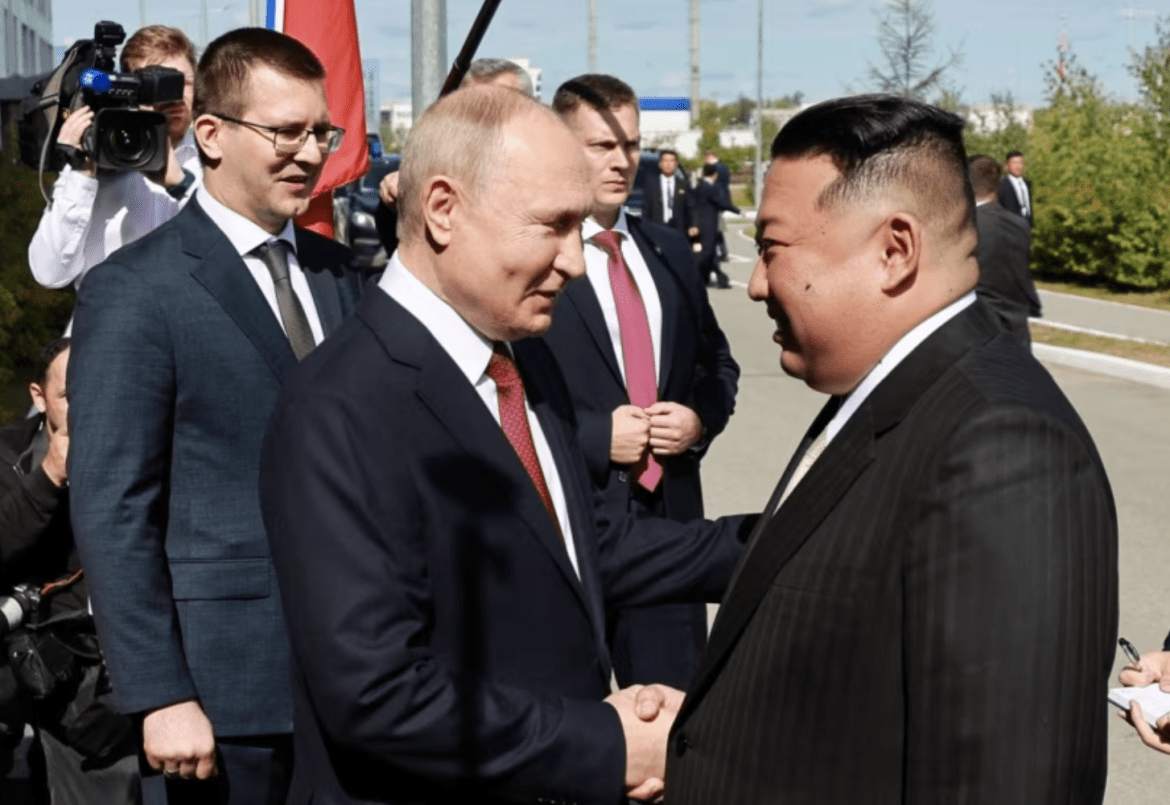 朝鲜领导人金正恩2023年9月13日访问俄罗斯并与总统普京会面。(媒体联访照片)
