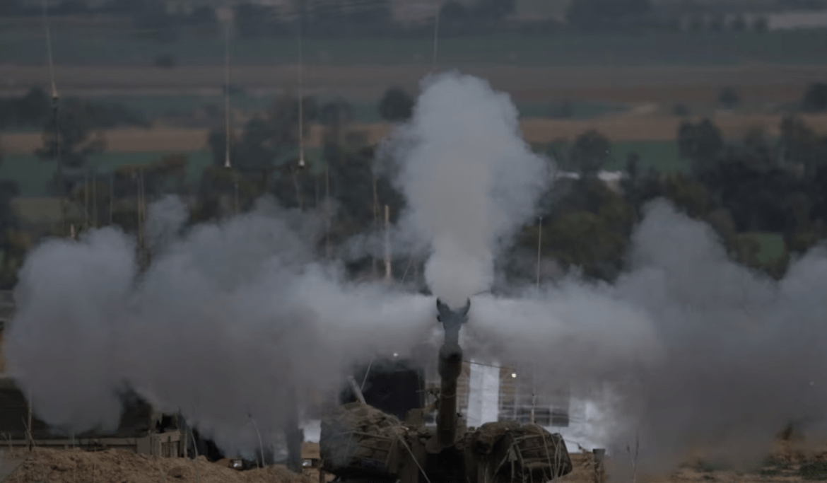以色列炮兵从以色列南部边界向加沙地带发射炮弹。(2024年1月14日)