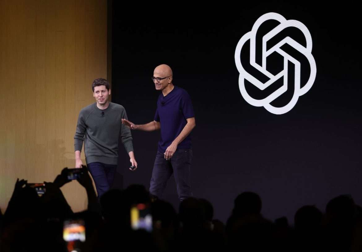11月,微软首席执行官纳德拉(右)与 OpenAI CEO阿尔特曼在一起。
