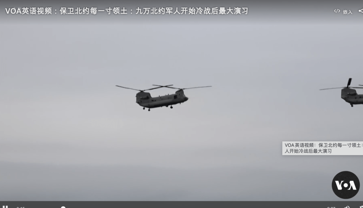 图片来源 : VOA英语视频:保卫北约每一寸领土:九万北约军人开始冷战后最大演习